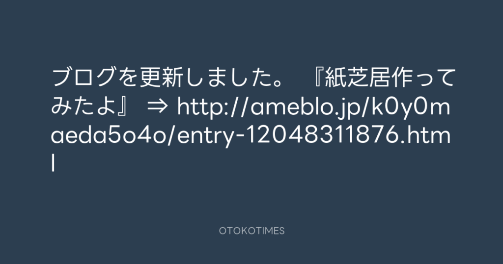 ブログを更新しました。 『紙芝居作ってみたよ』 ⇒ http://ameblo.jp/k0y0maeda5o4... -