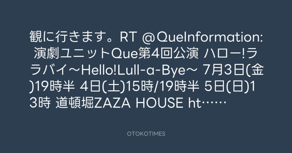 観に行きます。RT @QueInformation: 演劇ユニットQue第4回公演 ハロー!ララバイ~H...