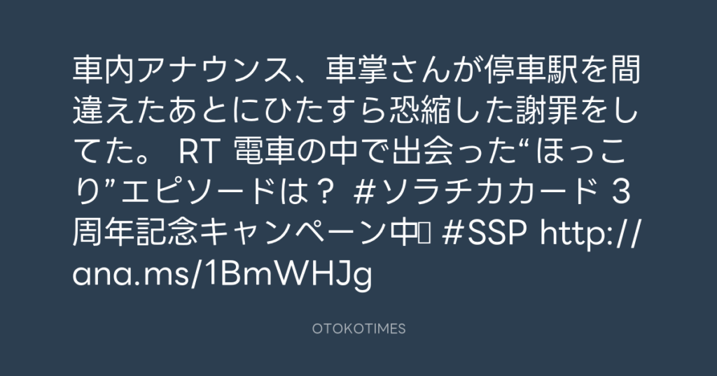 車内アナウンス、車掌さんが停車駅を間違えたあとにひたすら恐縮した謝罪をしてた... -