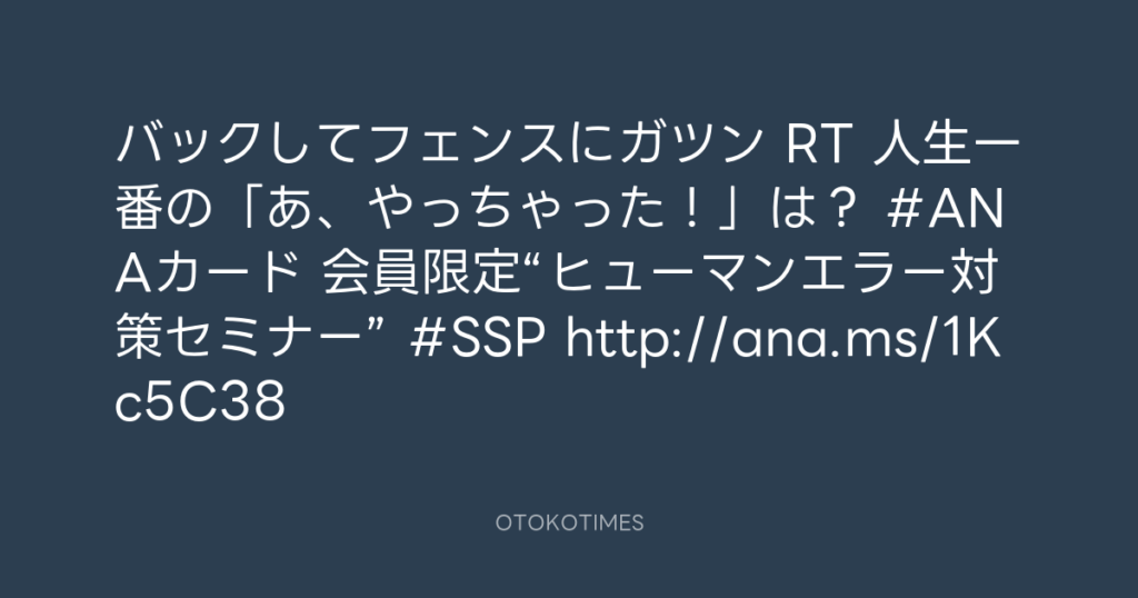 バックしてフェンスにガツン RT 人生一番の「あ、やっちゃった!」は? #ANAカード... -