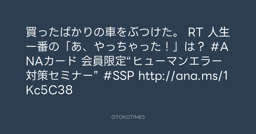 買ったばかりの車をぶつけた。 RT 人生一番の「あ、やっちゃった!」は? #ANAカー... -