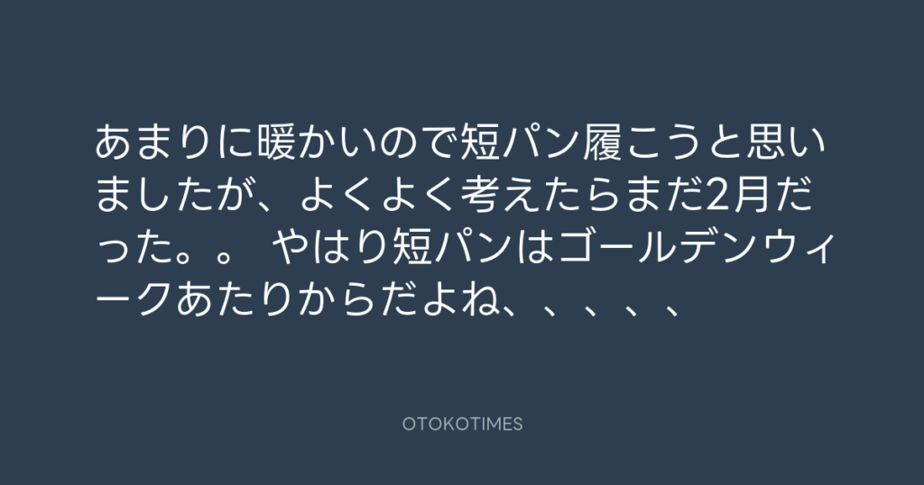 あまりに暖かいので短パン履こうと思いましたが、よくよく考えたらまだ2月だった。... -