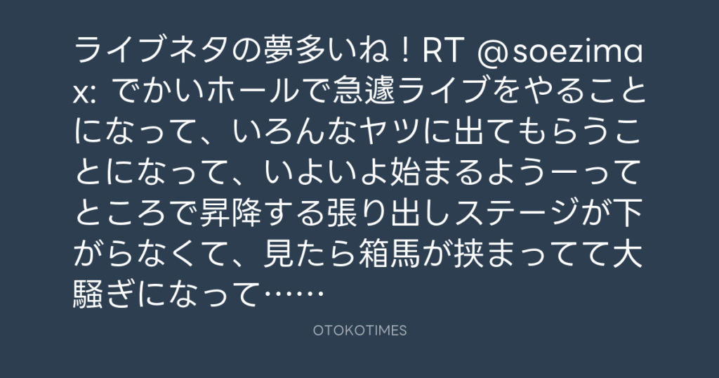 ライブネタの夢多いね!RT @soezimax: でかいホールで急遽ライブをやることになっ... -