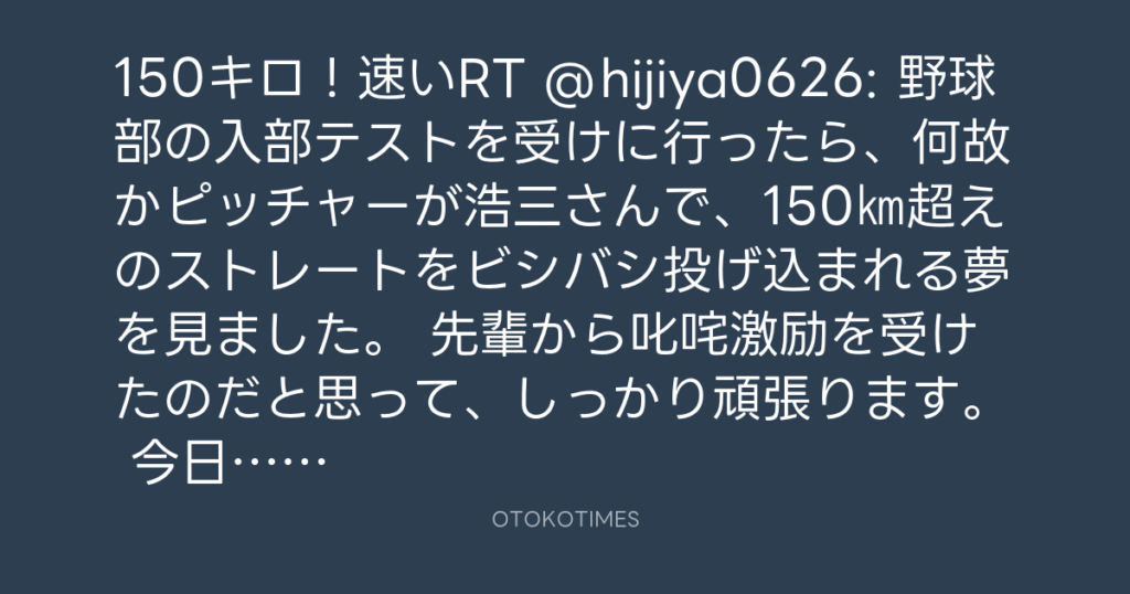 150キロ!速いRT @hijiya0626: 野球部の入部テストを受けに行ったら、何故かピッチ...