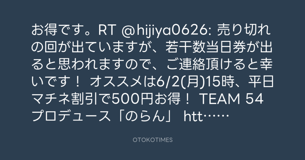 お得です。RT @hijiya0626: 売り切れの回が出ていますが、若干数当日券が出ると思... -