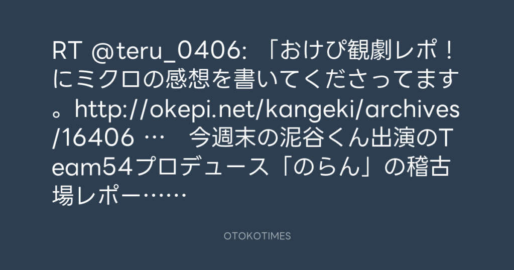 RT @teru_0406: 「おけぴ観劇レポ!にミクロの感想を書いてくださってます。http:/... -