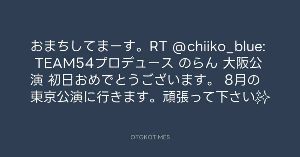 おまちしてまーす。RT @chiiko_blue: TEAM54プロデュース のらん 大阪公演 初日お... -