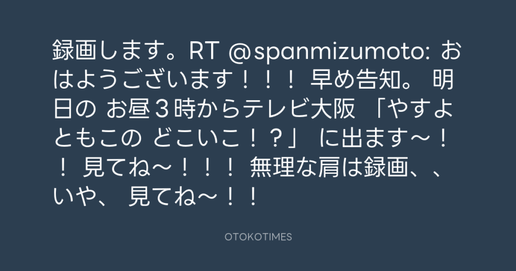 録画します。RT @spanmizumoto: おはようございます!!! 早め告知。 明日の お昼... -