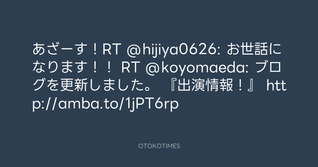 あざーす!RT @hijiya0626: お世話になります!! RT @koyomaeda: ブログを更新し... -
