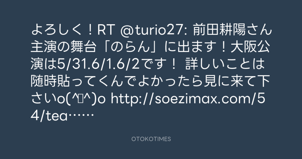 よろしく!RT @turio27: 前田耕陽さん主演の舞台「のらん」に出ます!大阪公演は5/... -
