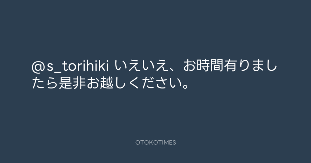 @s_torihiki いえいえ、お時間有りましたら是非お越しください。 -