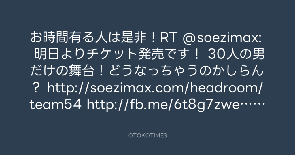 お時間有る人は是非!RT @soezimax: 明日よりチケット発売です! 30人の男だけの舞... -