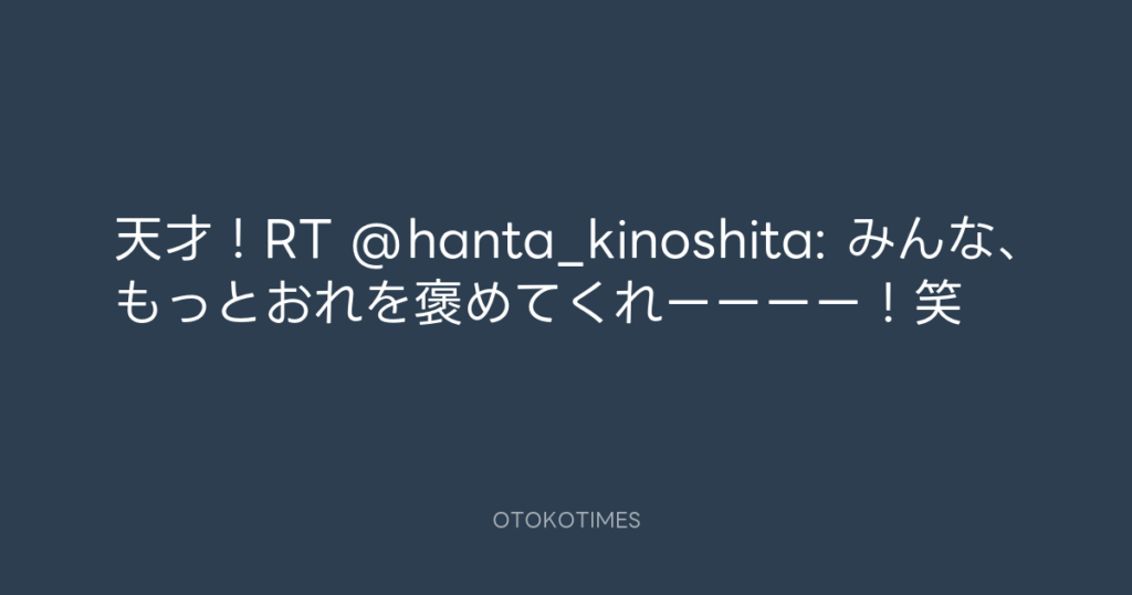 天才!RT @hanta_kinoshita: みんな、もっとおれを褒めてくれーーーー!笑 -