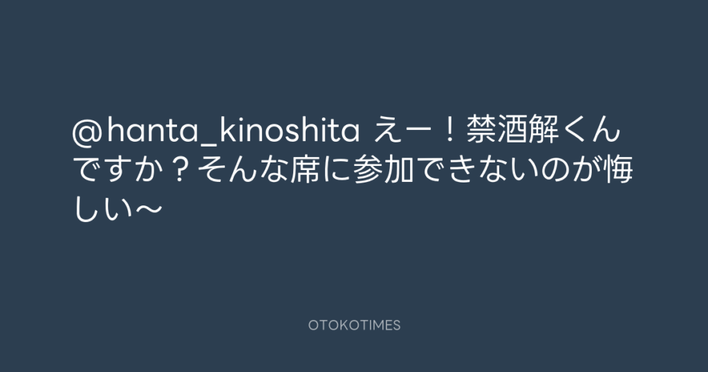 @hanta_kinoshita えー!禁酒解くんですか?そんな席に参加できないのが悔しい〜 -