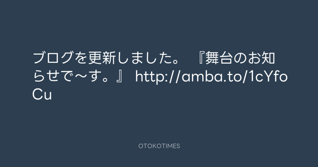 ブログを更新しました。 『舞台のお知らせで〜す。』 http://amba.to/1cYfoCu -
