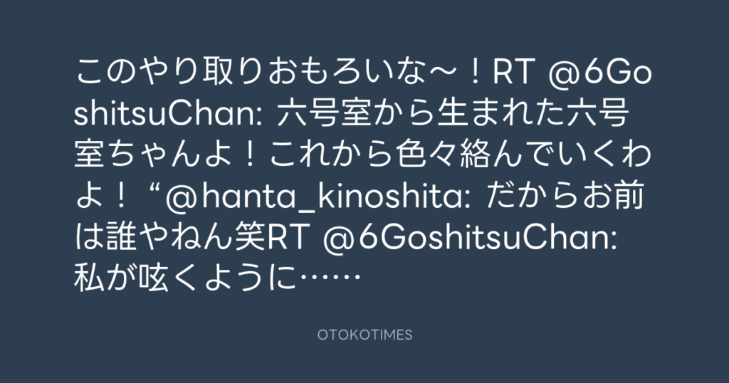 このやり取りおもろいな〜!RT @6GoshitsuChan: 六号室から生まれた六号室ちゃんよ... -