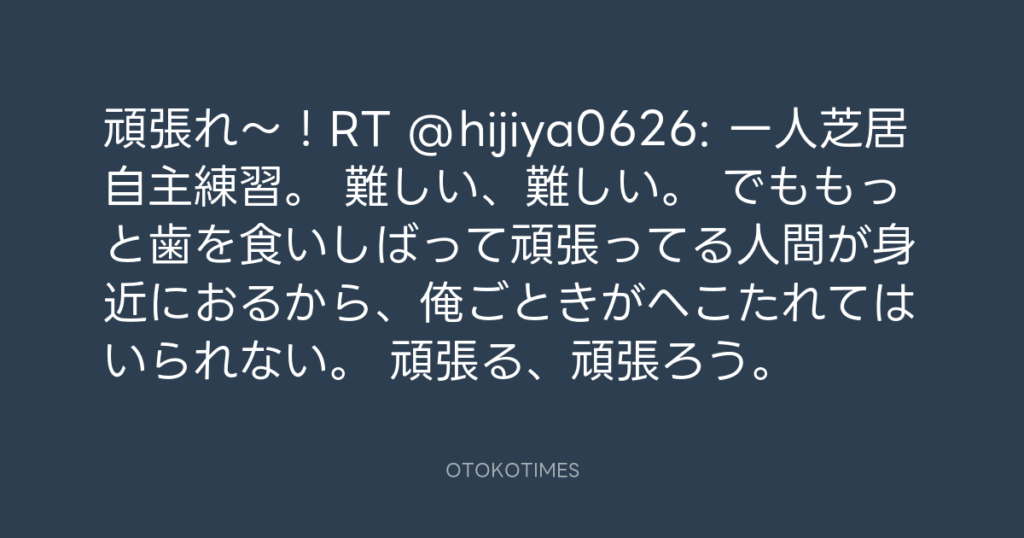 頑張れ〜!RT @hijiya0626: 一人芝居自主練習。 難しい、難しい。 でももっと歯を... -