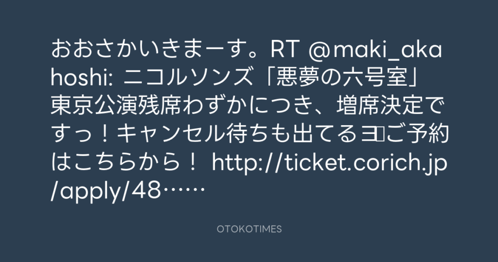 おおさかいきまーす。RT @maki_akahoshi: ニコルソンズ「悪夢の六号室」東京公演残... -