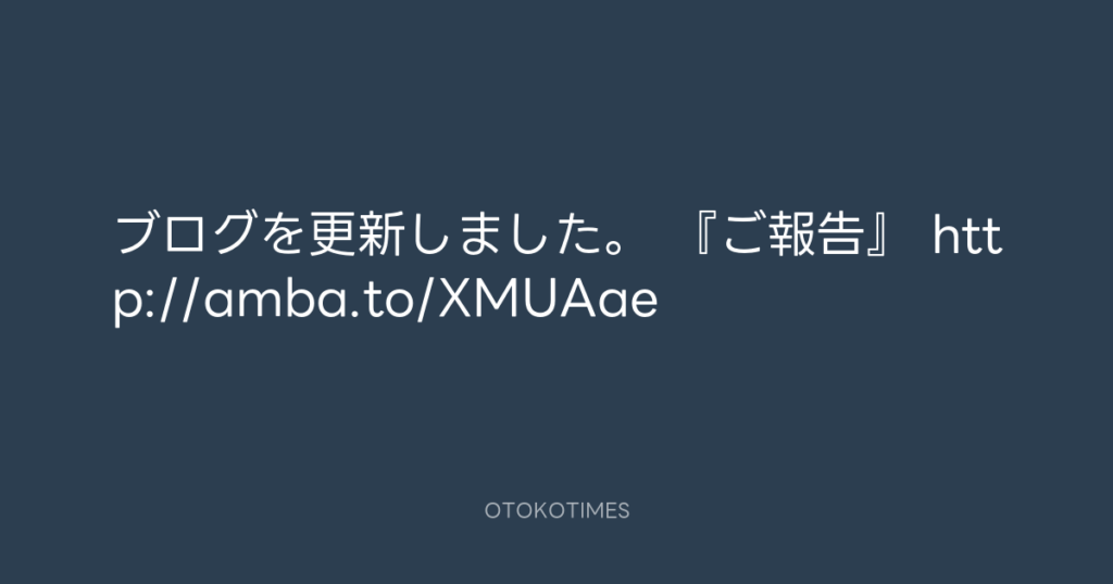 ブログを更新しました。 『ご報告』 http://amba.to/XMUAae -