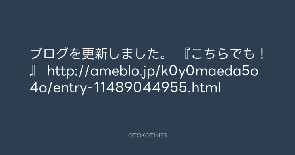 ブログを更新しました。 『こちらでも!』 http://ameblo.jp/k0y0maeda5o4o/entry-... -