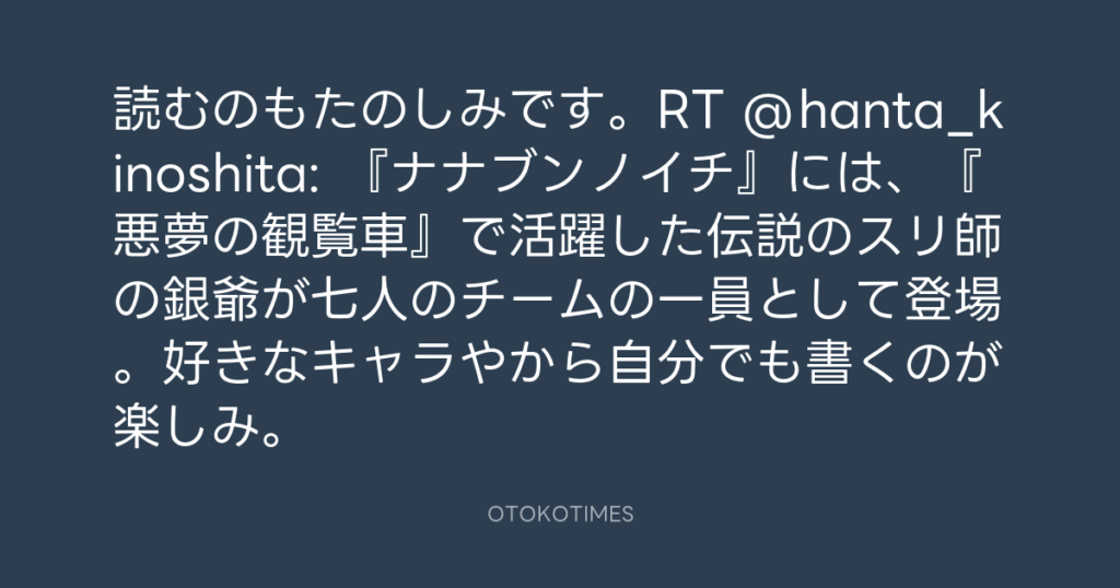 読むのもたのしみです。RT @hanta_kinoshita: 『ナナブンノイチ』には、『悪夢の観... -