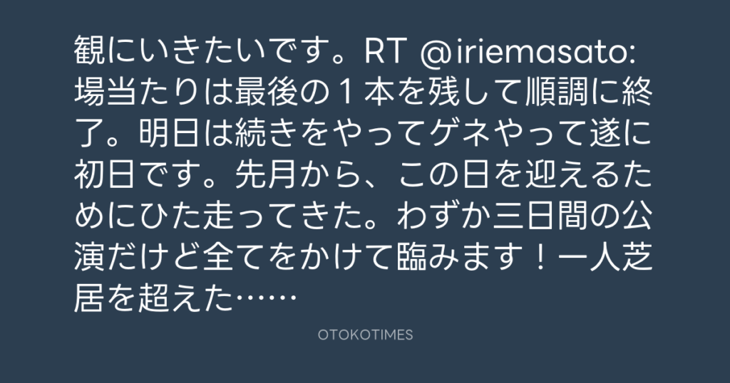 観にいきたいです。RT @iriemasato: 場当たりは最後の1本を残して順調に終了。明... -