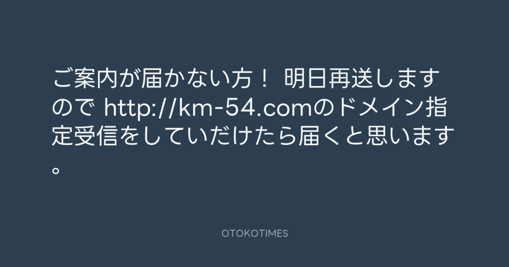 ご案内が届かない方! 明日再送しますので http://km-54.comのドメイン指定受信を... -