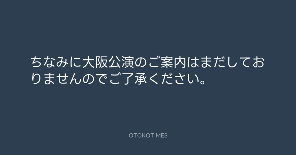ちなみに大阪公演のご案内はまだしておりませんのでご了承ください。 -