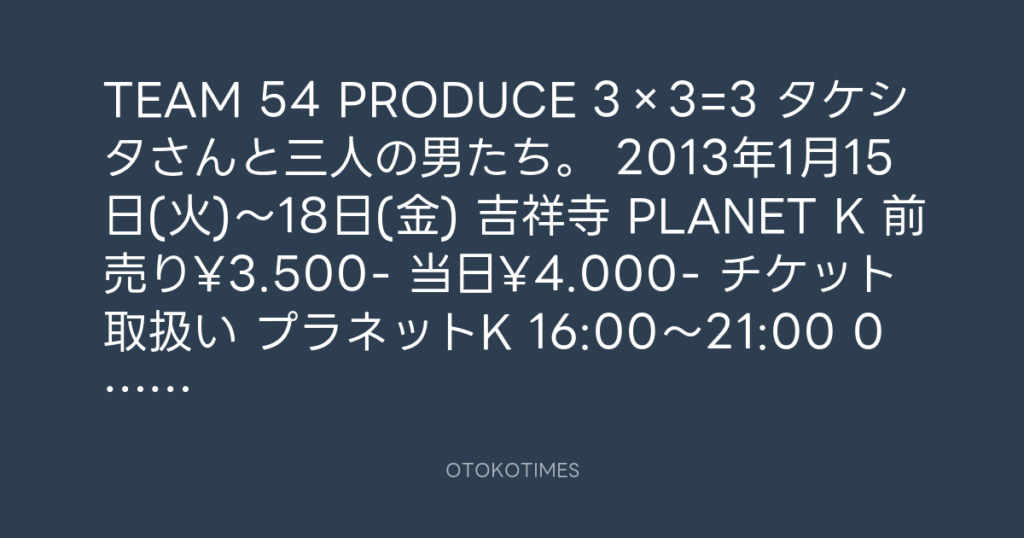 TEAM 54 PRODUCE 3×3=3 タケシタさんと三人の男たち。 2013年1月15日(火)〜18日(金... -