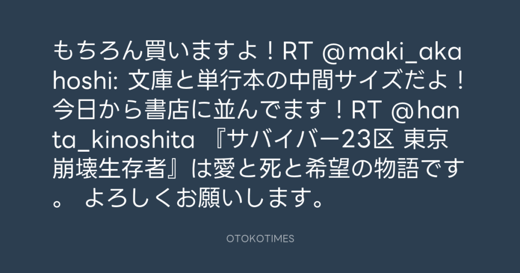 もちろん買いますよ!RT @maki_akahoshi: 文庫と単行本の中間サイズだよ!今日から... -