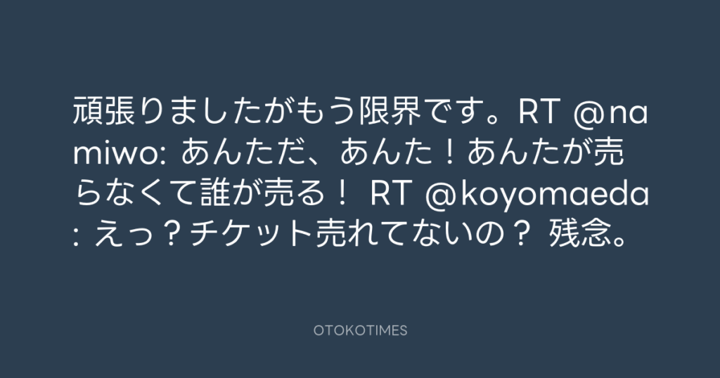 頑張りましたがもう限界です。RT @namiwo: あんただ、あんた!あんたが売らなくて... -