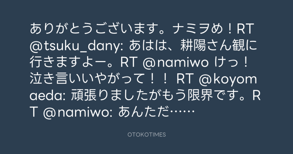 ありがとうございます。ナミヲめ!RT @tsuku_dany: あはは、耕陽さん観に行きます... -