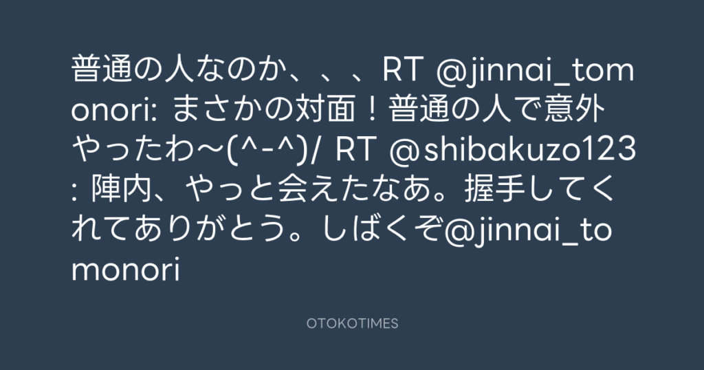 普通の人なのか、、、RT @jinnai_tomonori: まさかの対面!普通の人で意外やったわ... -