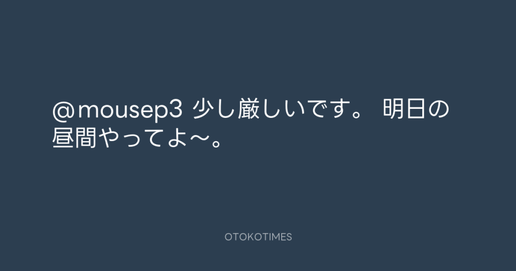 @mousep3 少し厳しいです。 明日の昼間やってよ〜。 -