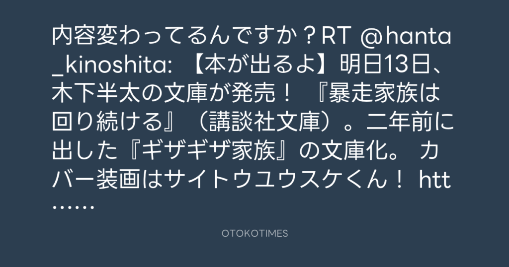 内容変わってるんですか?RT @hanta_kinoshita: 【本が出るよ】明日13日、木下半太... -