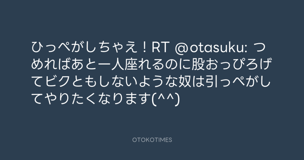 ひっぺがしちゃえ!RT @otasuku: つめればあと一人座れるのに股おっぴろげてビクと... -