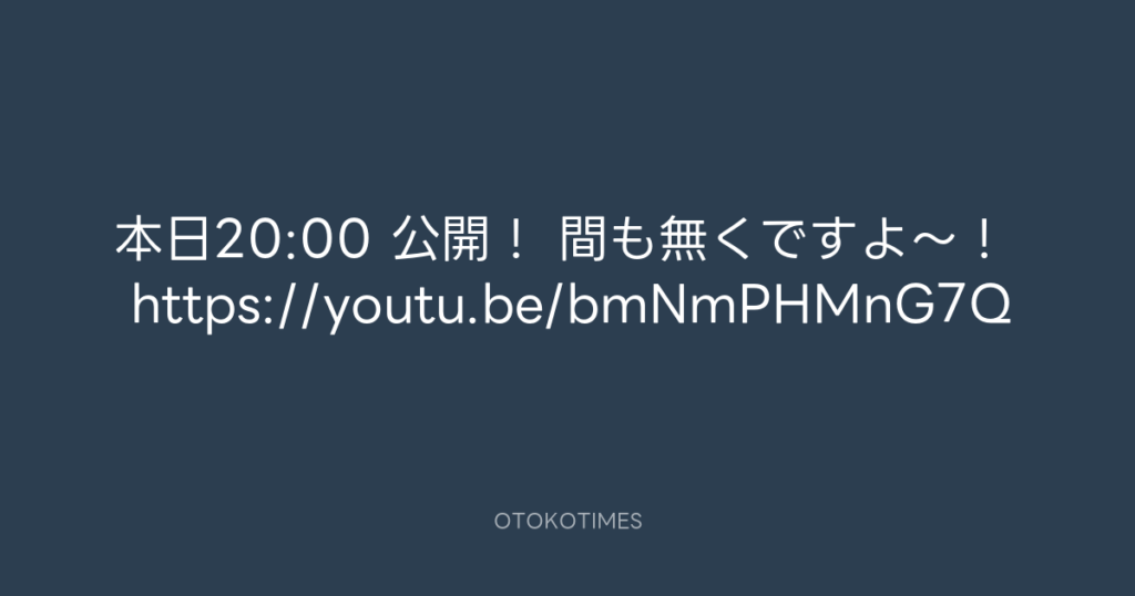 本日20:00 公開! 間も無くですよ〜! https://youtu.be/bmNmPHMnG7Q -
