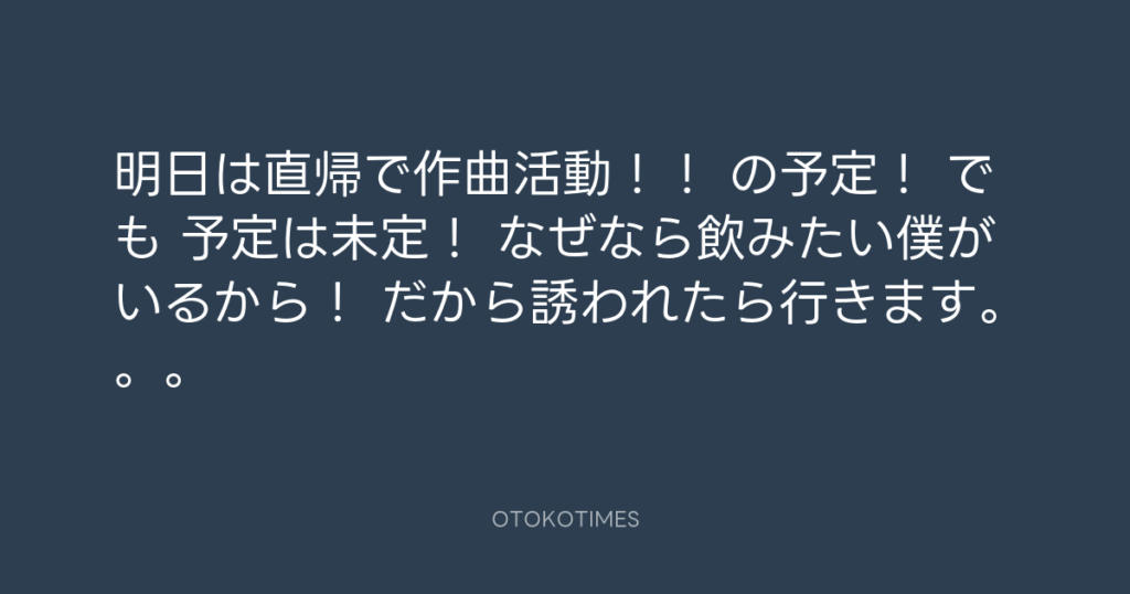 明日は直帰で作曲活動!! の予定! でも 予定は未定! なぜなら飲みたい僕がいる... -
