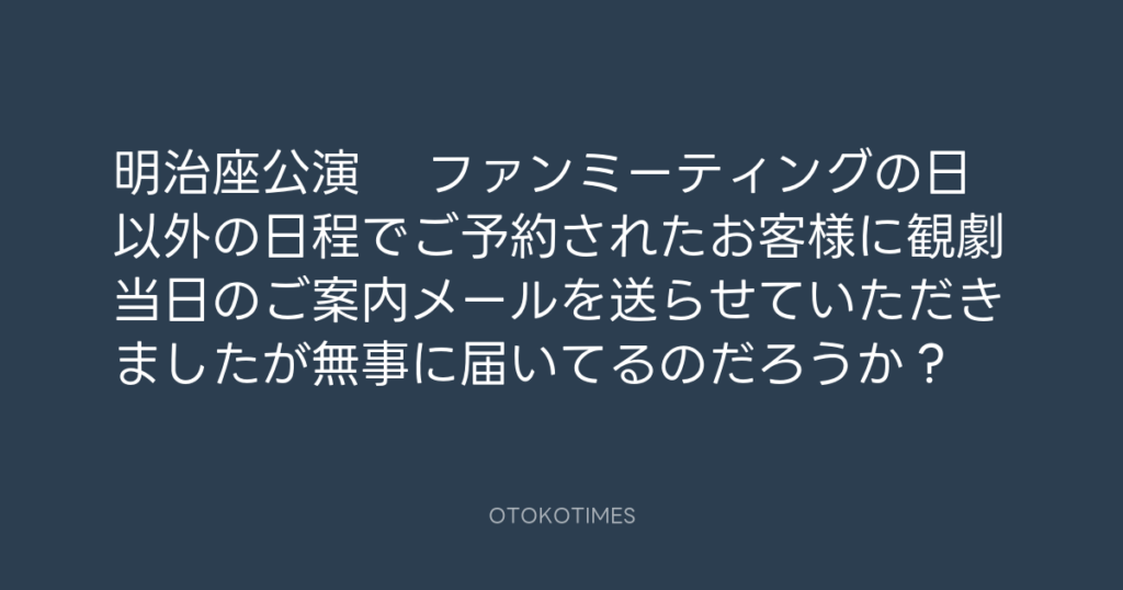 明治座公演 ファンミーティングの日以外の日程でご予約されたお客様に観劇当日の... -