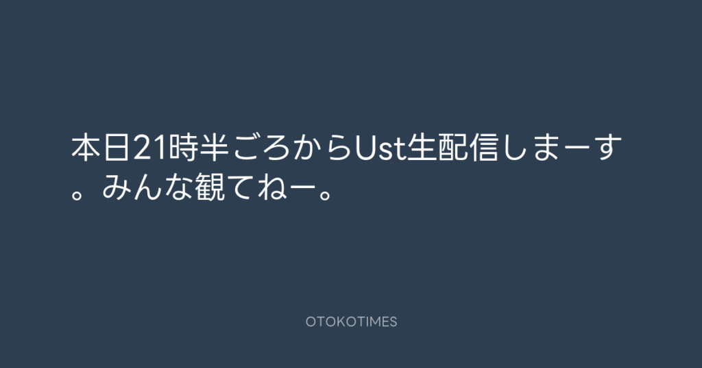 本日21時半ごろからUst生配信しまーす。みんな観てねー。 -