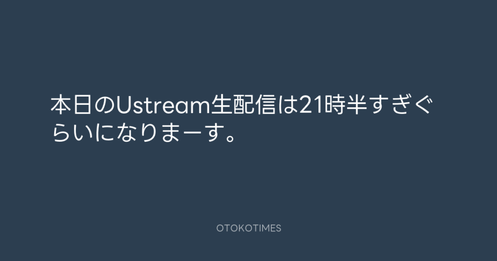 本日のUstream生配信は21時半すぎぐらいになりまーす。 -