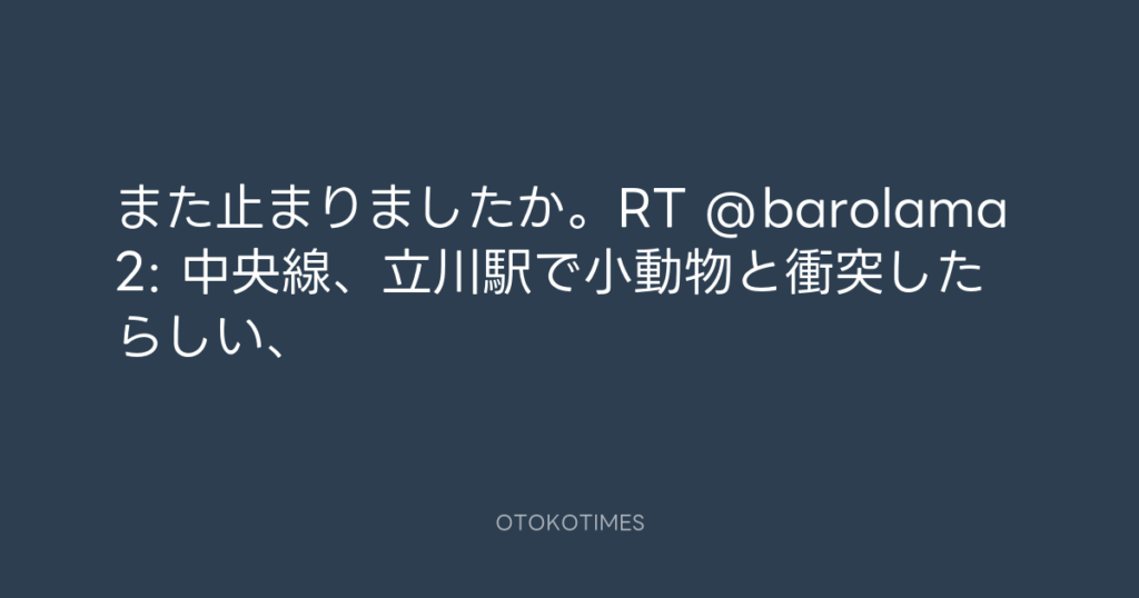 また止まりましたか。RT @barolama2: 中央線、立川駅で小動物と衝突したらしい、 -