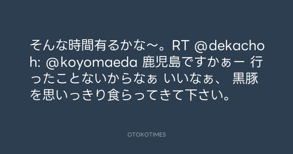 そんな時間有るかな〜。RT @dekachoh: @koyomaeda 鹿児島ですかぁー 行ったことな... -