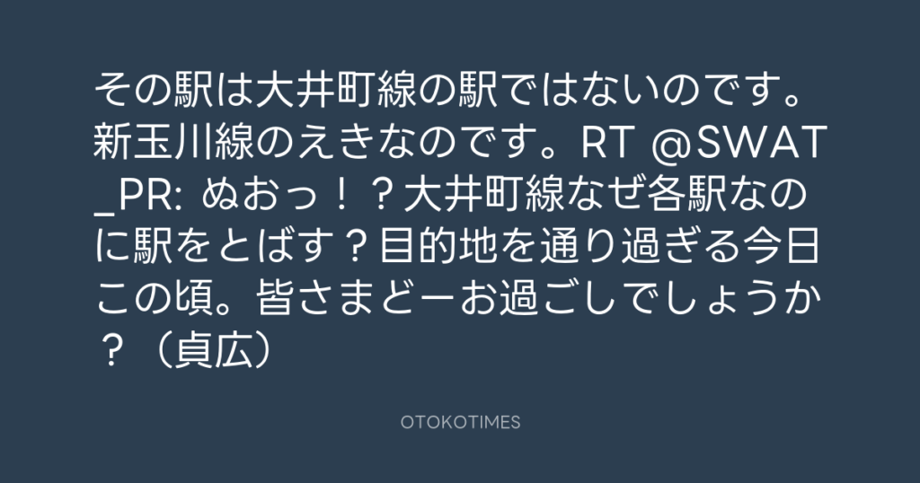 その駅は大井町線の駅ではないのです。新玉川線のえきなのです。RT @SWAT_PR: ぬお... -