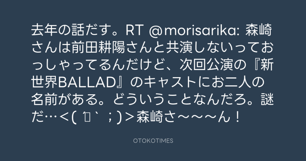 去年の話だす。RT @morisarika: 森崎さんは前田耕陽さんと共演しないっておっしゃ... -