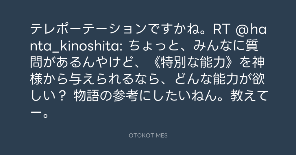 テレポーテーションですかね。RT @hanta_kinoshita: ちょっと、みんなに質問がある... -