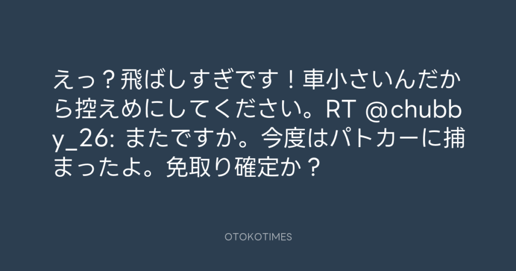 えっ?飛ばしすぎです!車小さいんだから控えめにしてください。RT @chubby_26: ま... -