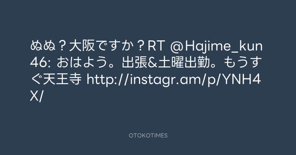 ぬぬ?大阪ですか?RT @Hajime_kun46: おはよう。出張&土曜出勤😢。もうすぐ天... -