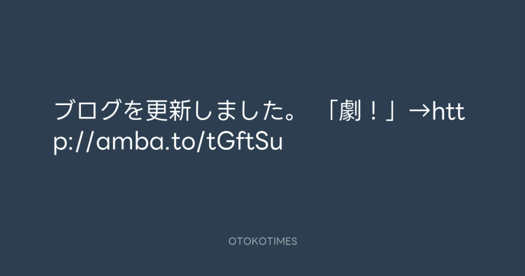 ブログを更新しました。 「劇!」→http://amba.to/tGftSu -