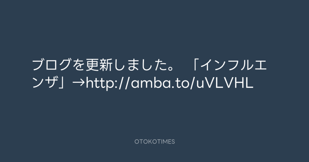 ブログを更新しました。 「インフルエンザ」→http://amba.to/uVLVHL -